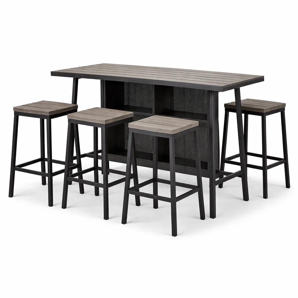 Composants : 1 table de bar, 4 tabourets